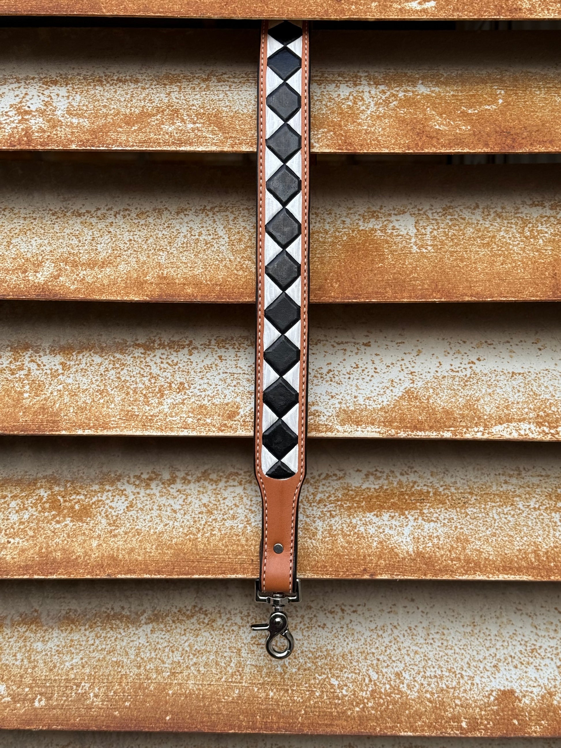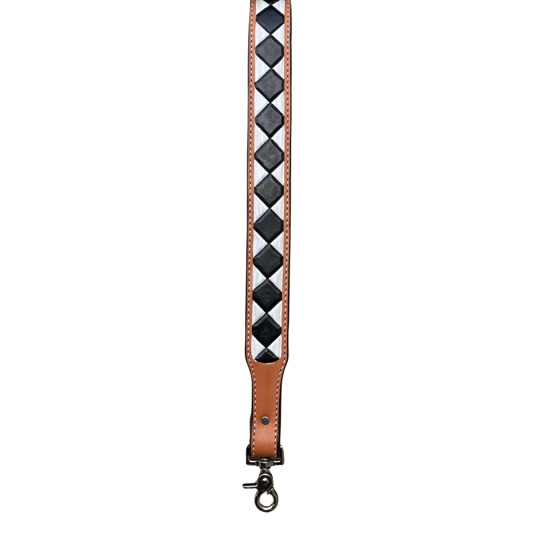 1.5" Straight hand tooled purse strap with full quilted, that is hand painted in black and white