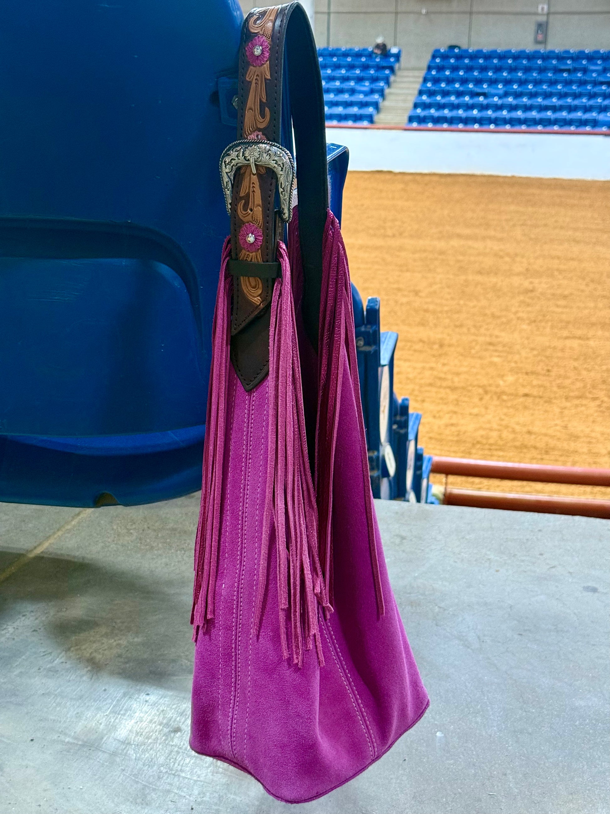Crafted from rich, premium suede that feels like a dream, this bag blends effortless function with true Western soul. Its hand-tooled leather shoulder strap tells a story with every carve, and the removable silver buckle lets you adjust or change up the look in a heartbeat. Inside, you’ll find a matching wristlet insert — perfect for those quick, grab-and-go moments.